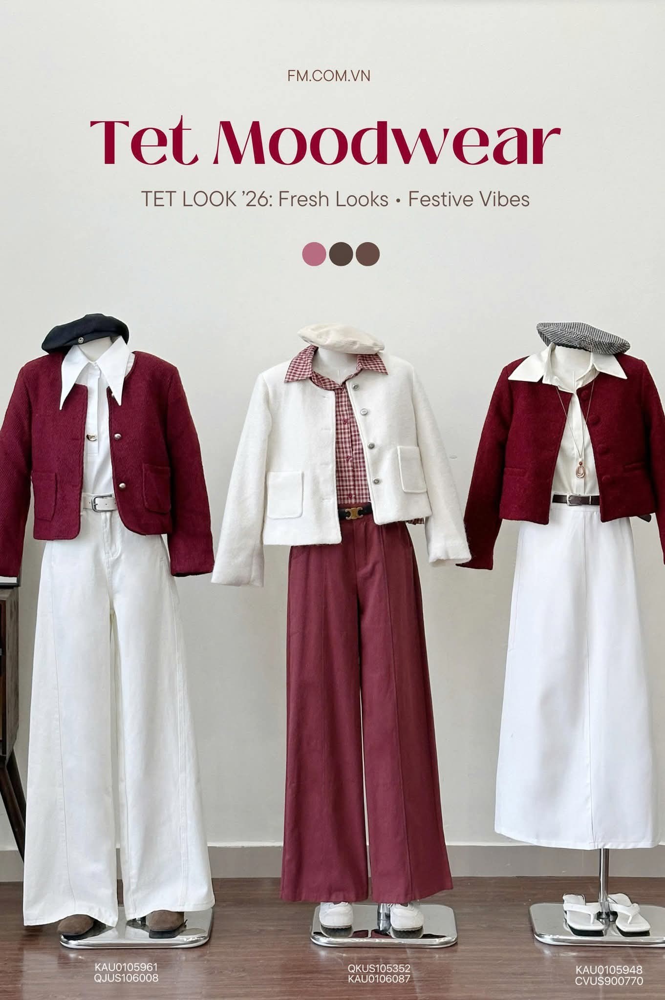 Các mẫu quần áo Tết tại FM STYLE được trưng bày chỉnh chu, màu sắc hài hòa, phong cách thanh lịch xen lẫn trẻ trung. Dễ phối đồ, phù hợp đi chơi Tết, du xuân hay chụp ảnh đầu năm.