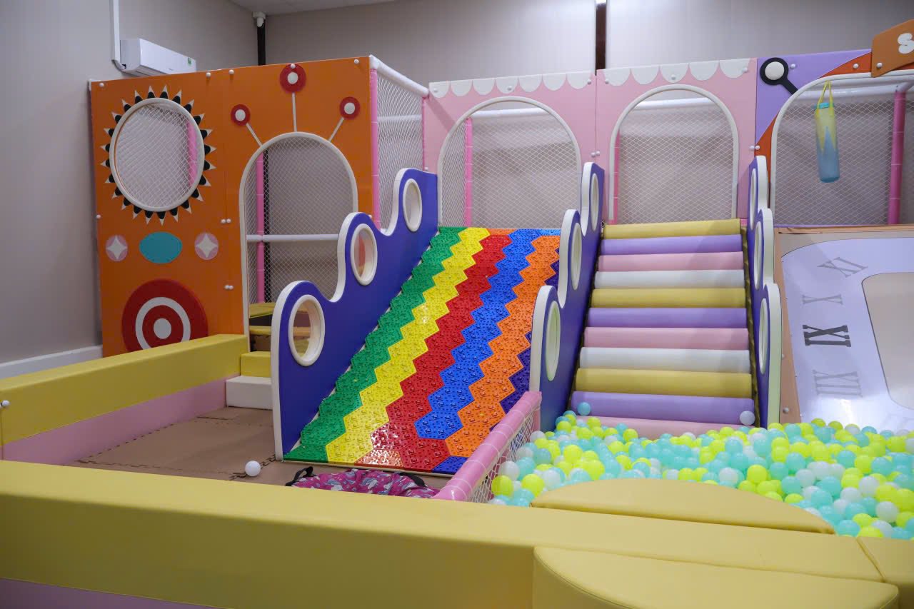 Điểm cộng đặc biệt của Nari Kafe chính là khu vui chơi dành cho trẻ em đầy màu sắc và an toàn. Không gian sạch sẽ, dễ thương với cầu trượt, hồ bóng giúp các bé thỏa sức vui chơi, trong khi ba mẹ có thể yên tâm thư giãn bên ly cà phê. Một quán cà phê vừa đẹp, vừa tinh tế, lại cực kỳ thân thiện với gia đình – đúng nghĩa nơi để cả nhà cùng tận hưởng những khoảnh khắc bình yên.